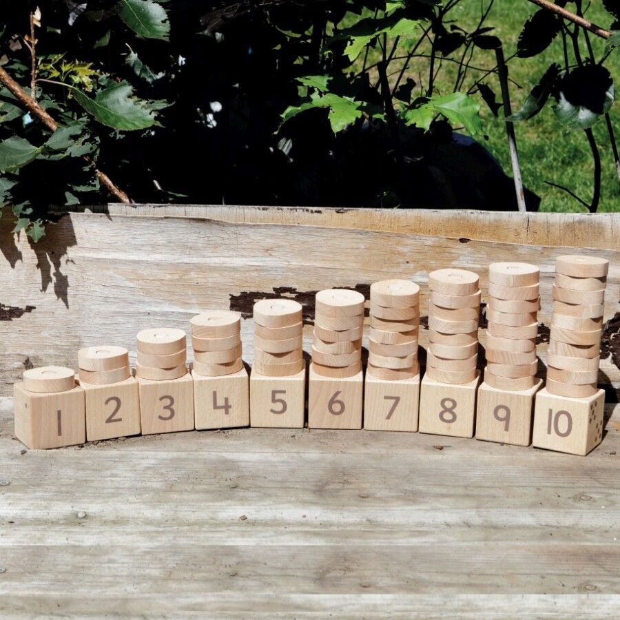 Ideal for exploring counting, subitising, one-to-one correspondence, number order, one more and one less, and simple comparison, this engaging set invites children to physically stack and manipulate the rings as they learn. The graduated number posts and loose rings provide a clear visual representation of quantity, supporting children to see the ‘how many’ of each number in a concrete and accessible way. Made from FSC-certified beech wood, this durable set is well-suited to repeated use in early learning environments and offers a rich, tactile approach to early maths exploration.
