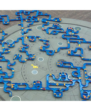 The AquaPlay Super Set is a traditional canal system which has amazing play features, like the crane that assists you to lift containers onto the transport boat, a slipway allowing the amphibian car to go from land to water and the popular water lock. Here the vehicles can pass through by manoeuvring the water level with help of the pump and lock gates. Turn the paddle wheel and thereby set the water in motion. A playful way of educating how water moves. The Super Set can easily be combined with other AquaPlay extensions or sets.
