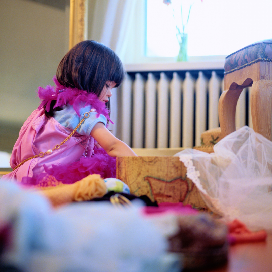 When children are role-playing they are sometimes acting out various memories or scenarios they may have personally experienced, or something that is of some interest to them. Setting up some basic props such as dress-up clothes, dolls, and household equipment can be a starting point for reenacting elements of family relationships with siblings, parents, or grandparents.