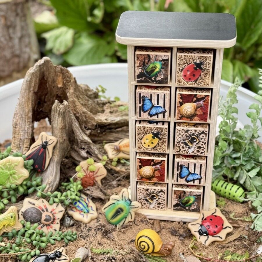This charming, interactive bug hotel is a versatile resource designed to support children in developing a secure understanding of numbers to ten through nature-inspired play in Australian ELC settings. Crafted from FSC-certified wood, the sturdy frame houses ten chunky pine cubes featuring a bee, beetle, butterfly, snail, and red and yellow ladybirds in their preferred habitats. This resource is ideal for early counting activities, allowing children to use the frame vertically or horizontally while exploring different ways to compose the same number.
