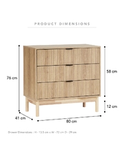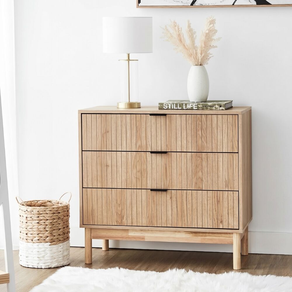 The Chest of 3 Drawers offers a practical and stylish storage solution for early learning environments, with a design that supports both organisation and a calm, welcoming atmosphere. Finished in a natural timber look with subtle vertical panel detailing, it brings warmth and texture to interiors while blending easily with a wide range of room styles and colour palettes.
