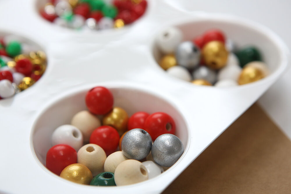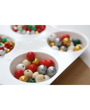Natural wooden beads in assorted Christmas Colours, for all your decorating and beading projects. 16mm smooth round beads with a threading hole large enough for little hands to navigate.