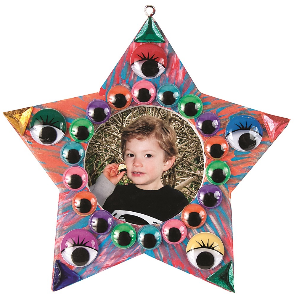 Pre-made clay photo frames in a star shape with a 50mm photo insert. Decorate with paint and collage.