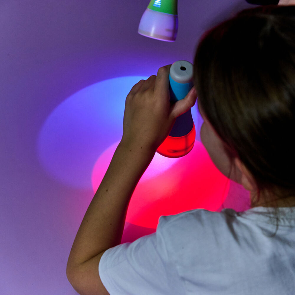 The torches are ergonomically designed for small hands and feature a self-stabilising shape to prevent rolling during use. Each torch contains a bright LED that provides clear illumination for shadow play, pattern exploration and light experiments.