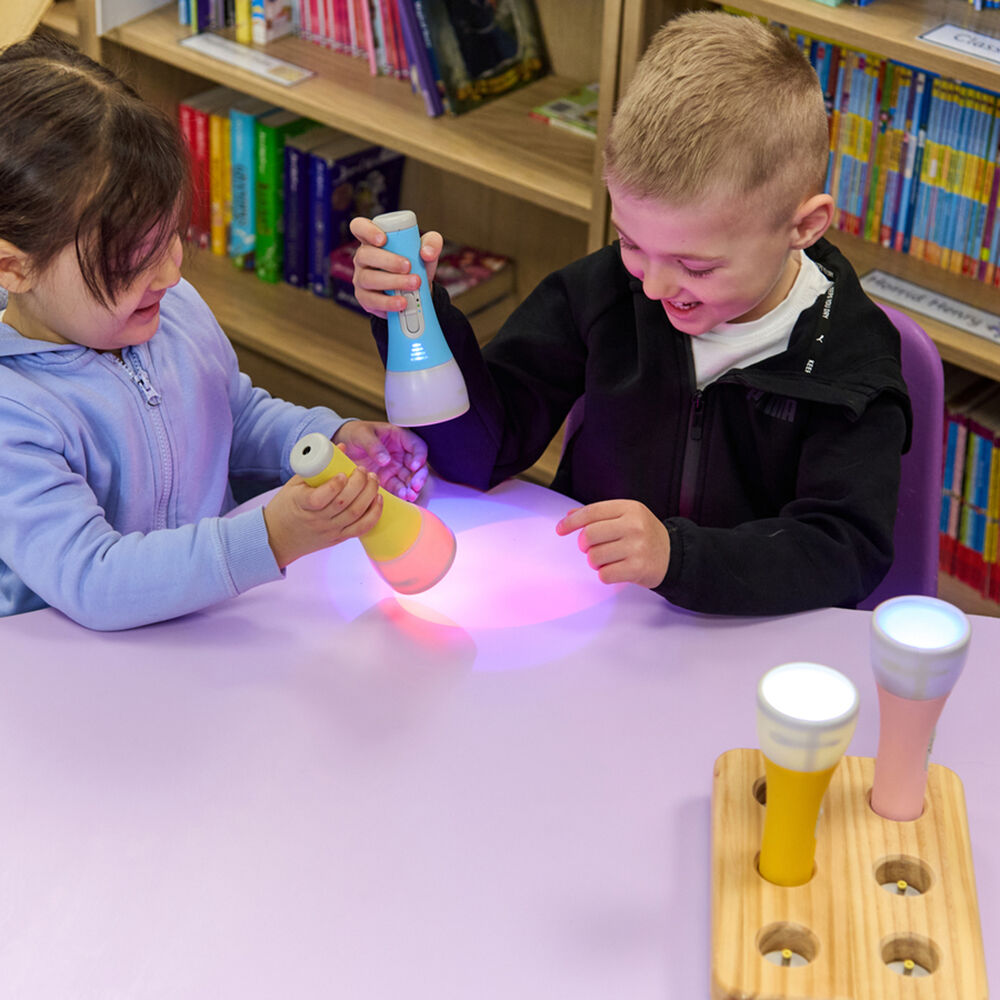 Ideal for sensory areas, investigation tables or dark spaces, the torches support children as they explore concepts such as how light travels, how shadows form and how colours combine. The large, simple on/off switch encourages independence and allows children to confidently operate the resource themselves.