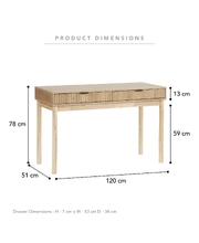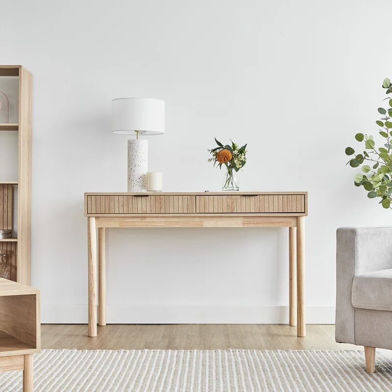 Designed with functionality in mind, the Console Table features two drawers that help keep essential items neatly stored and out of sight. The vertical panel detail on the drawer fronts adds texture and visual interest while maintaining a refined, modern appearance. Its versatile size makes it suitable for a range of spaces, from narrow entryways to larger shared areas, supporting both organisation and presentation in busy ELC settings.