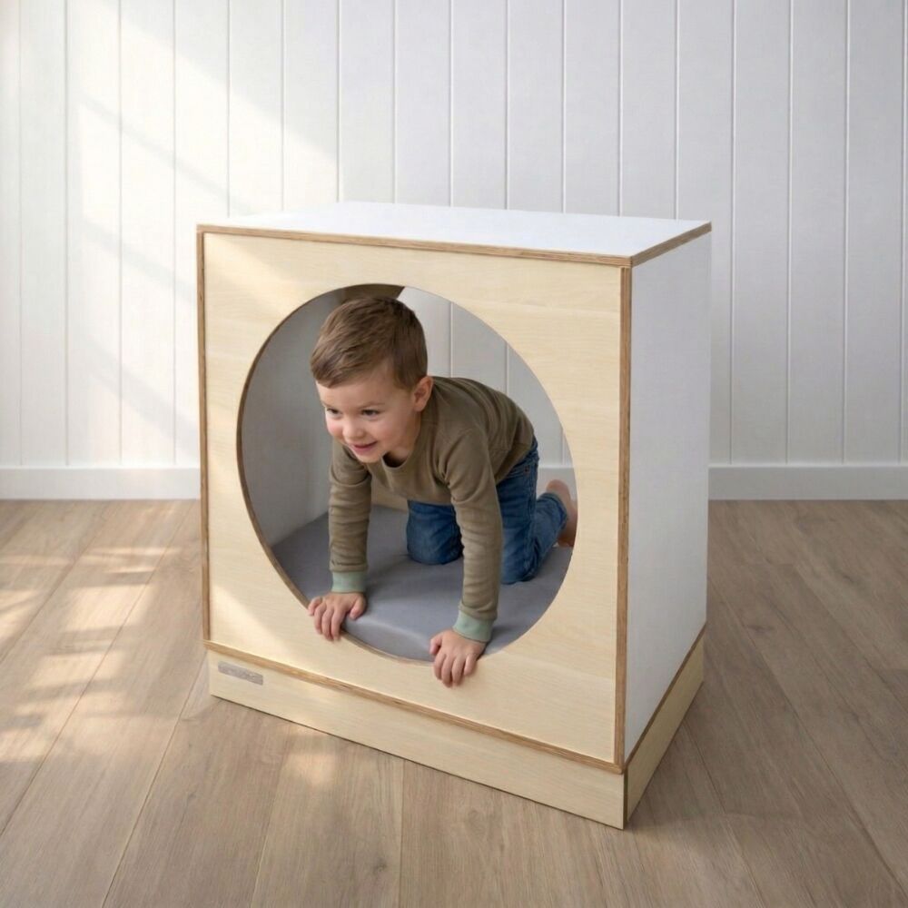 A crawl-through unit brings both comfort and adventure to the classroom, offering children a cosy spot to retreat from noise as well as a playful passageway to another space. Its child-sized tunnel design encourages imaginative play and exploration while also serving as a calming hideaway where children can sit, relax, and feel secure. The open-ended structure supports both active movement and quiet reflection, making it a versatile addition to any kindergarten environment. Safe, sturdy, and inviting, the crawl-through unit helps foster independence, emotional regulation, and social interaction in a fun and engaging way.