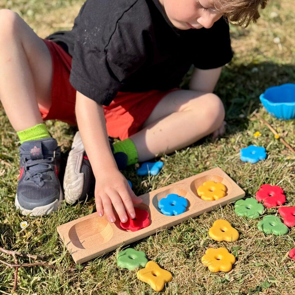 Explore early mathematical concepts through hands-on play with this beautiful set of nature-inspired flower bowls and matching flower stones. Designed to encourage counting, sorting and pattern making, each flower colour features three, four, five or six petals to support children as they begin developing early number recognition and subitising skills. With four appealing colours and a tactile stone finish, this versatile set invites children to investigate colour matching, quantity and classification through playful discovery.
