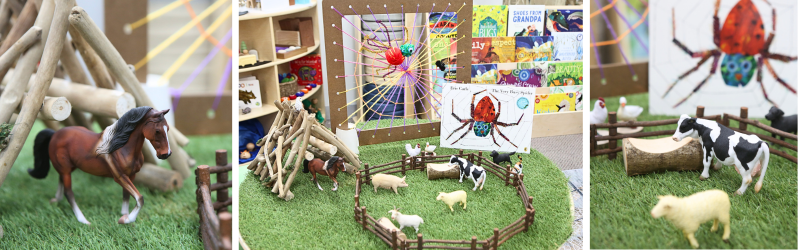 To create this playspace, we used Eric Carle’s book, The Very Busy Spider as our provocation inspiration.