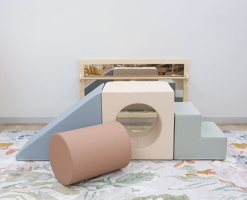 Constructed from high-density soft foam and finished in a neutral-toned vinyl, each piece provides the perfect balance of softness and support, ensuring a safe and durable play surface. The easy-to-clean vinyl covering makes maintenance simple, while Velcro fastening strips on each block allow the pieces to be securely connected and rearranged for multiple configurations.