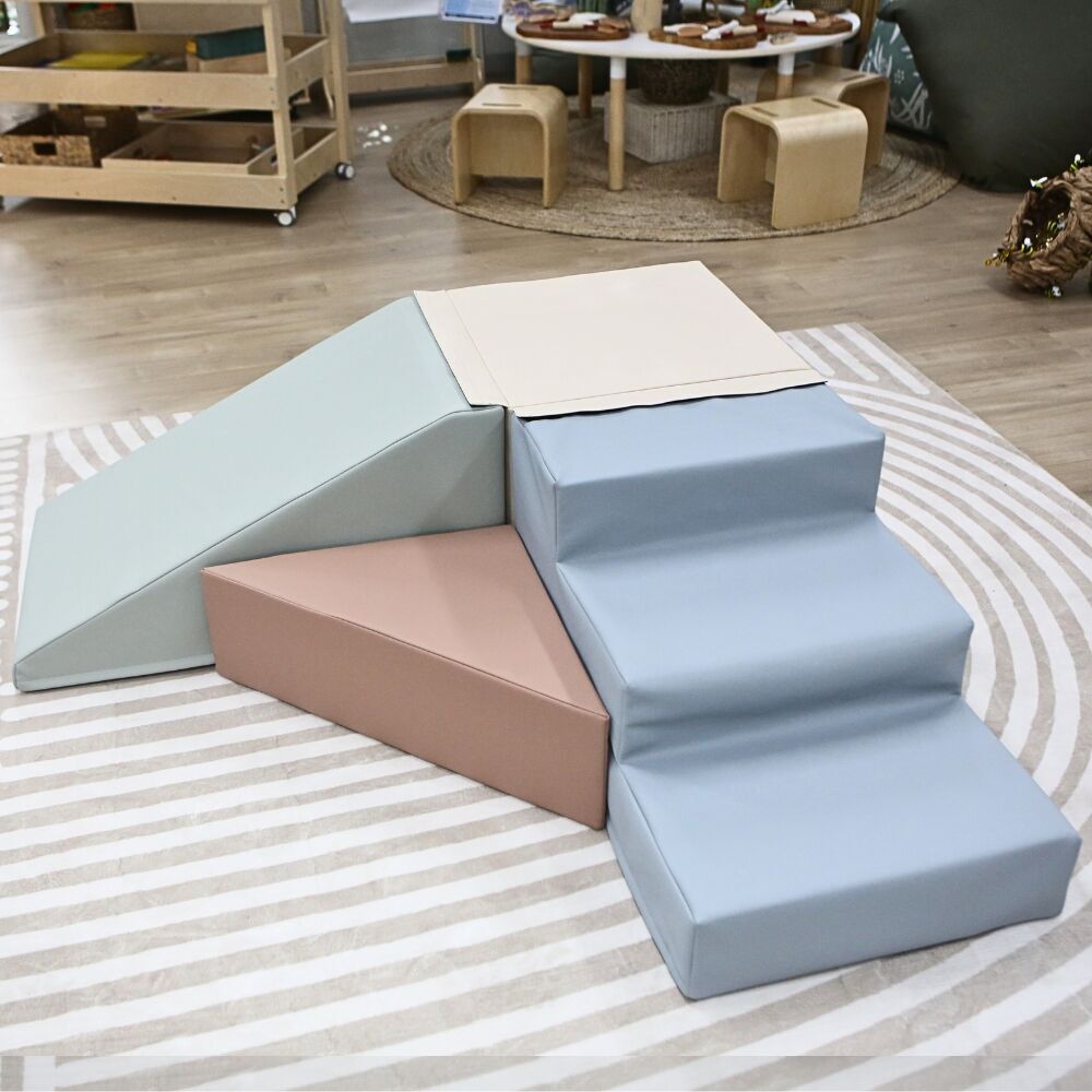Constructed from high-density soft foam and finished in a neutral-toned, durable vinyl, each block offers the ideal balance of softness and support. The vinyl covering is easy to clean with soapy water or wipes, making it practical for busy centres, while Velcro fastening strips securely connect the blocks for flexible and safe configurations.