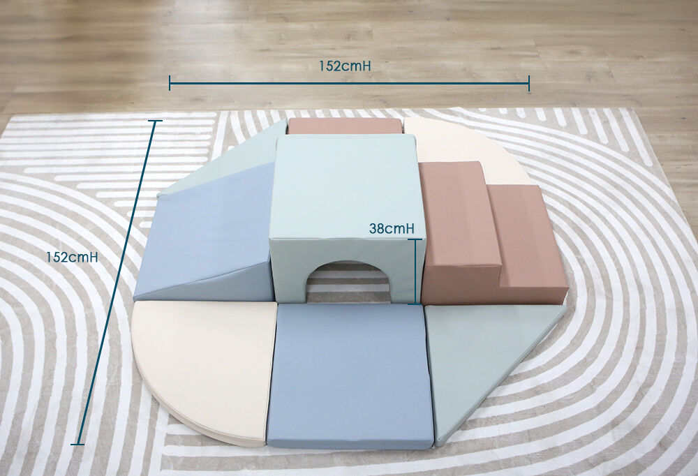 For stability and flexibility, each block comes with Velcro fastening strips, allowing the pieces to be securely connected and arranged in multiple configurations.