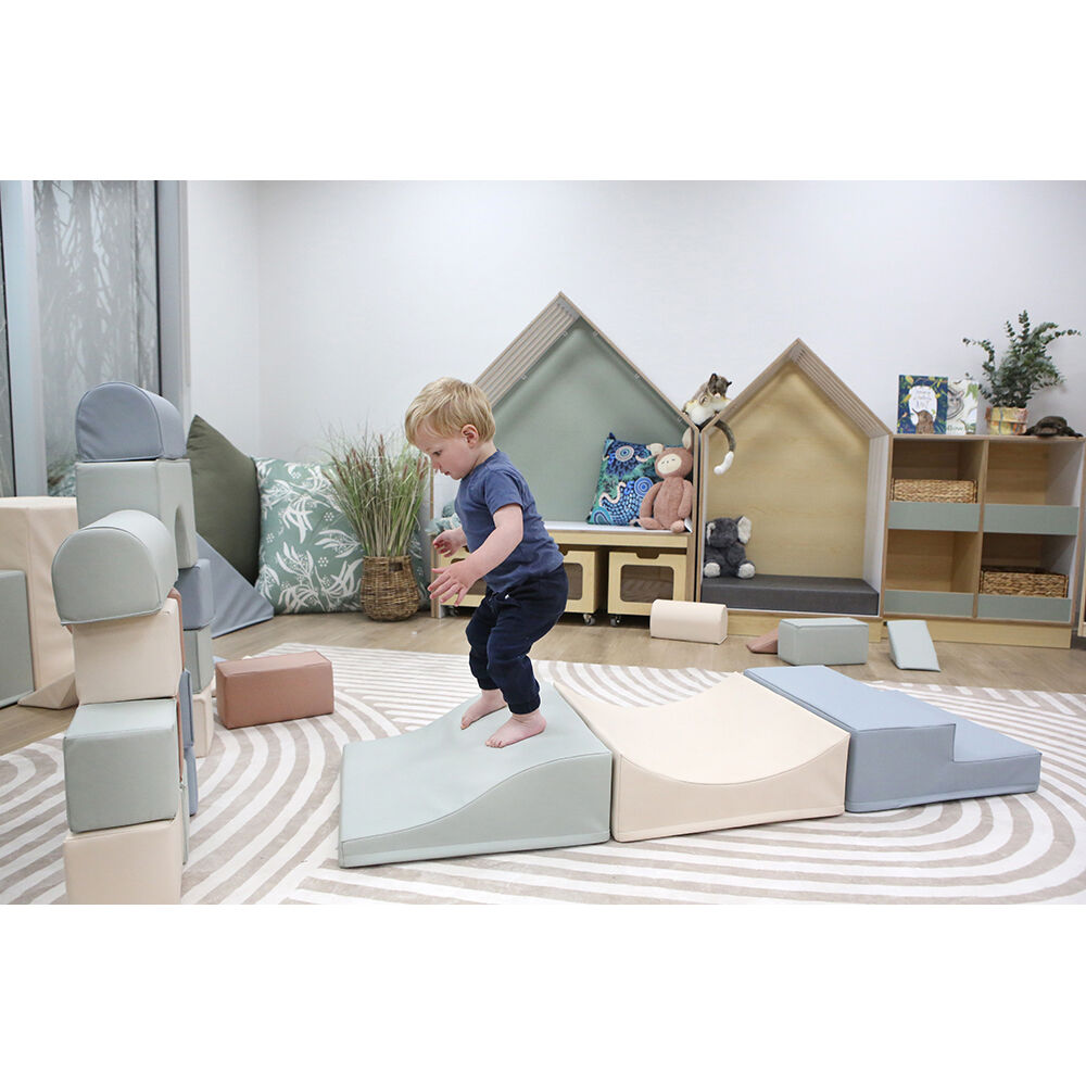 Encourage active exploration and support the development of gross motor skills with this beautifully designed soft play set, featuring gentle neutral tones that complement any early learning environment. Comprising a step, dip, and ramp, this set provides a safe and inviting space for infants and toddlers to crawl, climb, slide, and discover through movement-based play.
