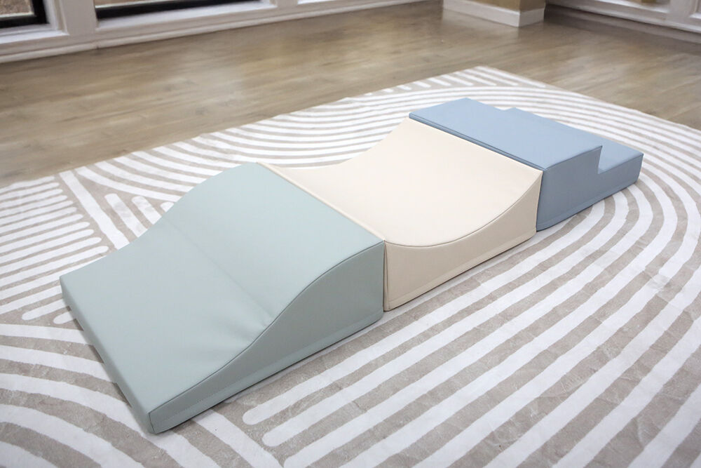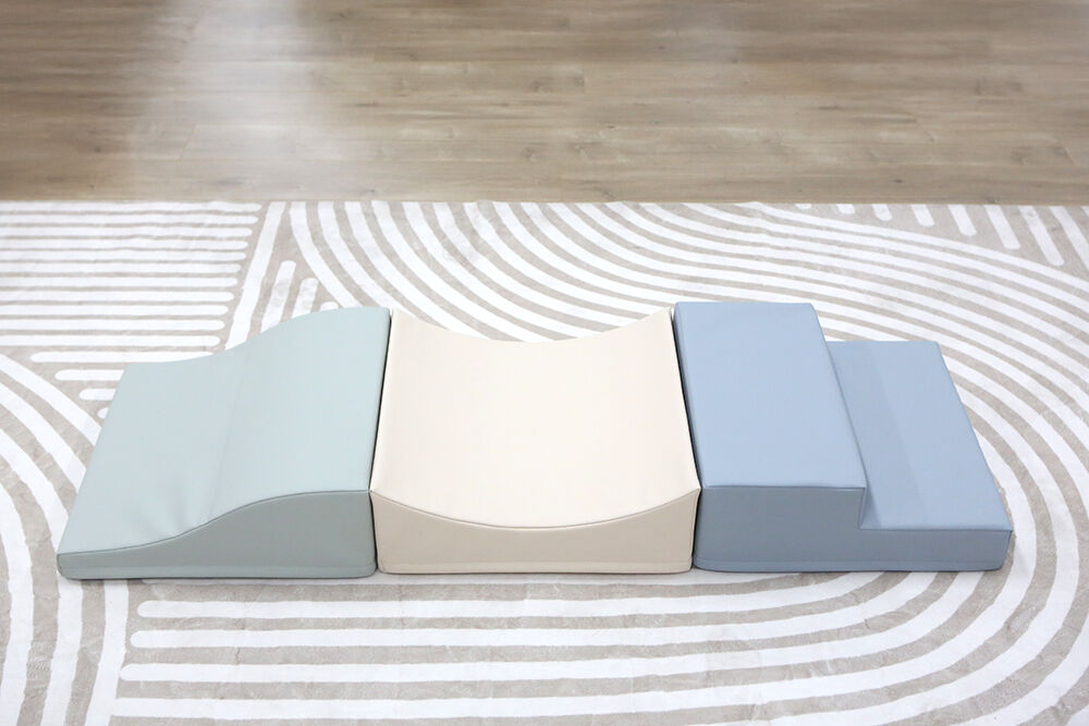 Crafted from water-resistant, easy-to-clean, vinyl-covered foam, each piece offers a soft yet supportive surface, perfect for little learners as they build confidence, balance, and coordination. The tactile, flexible design invites hands-on interaction, fostering sensory awareness while encouraging physical development.