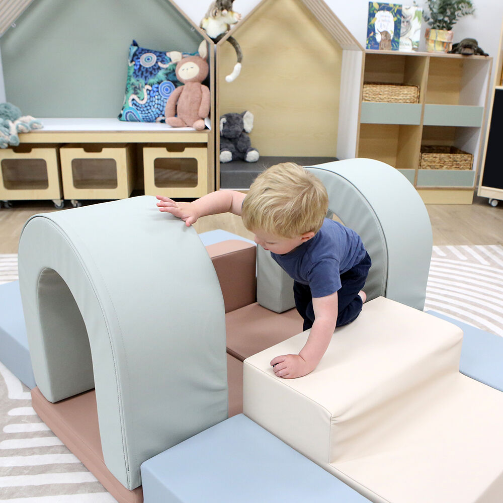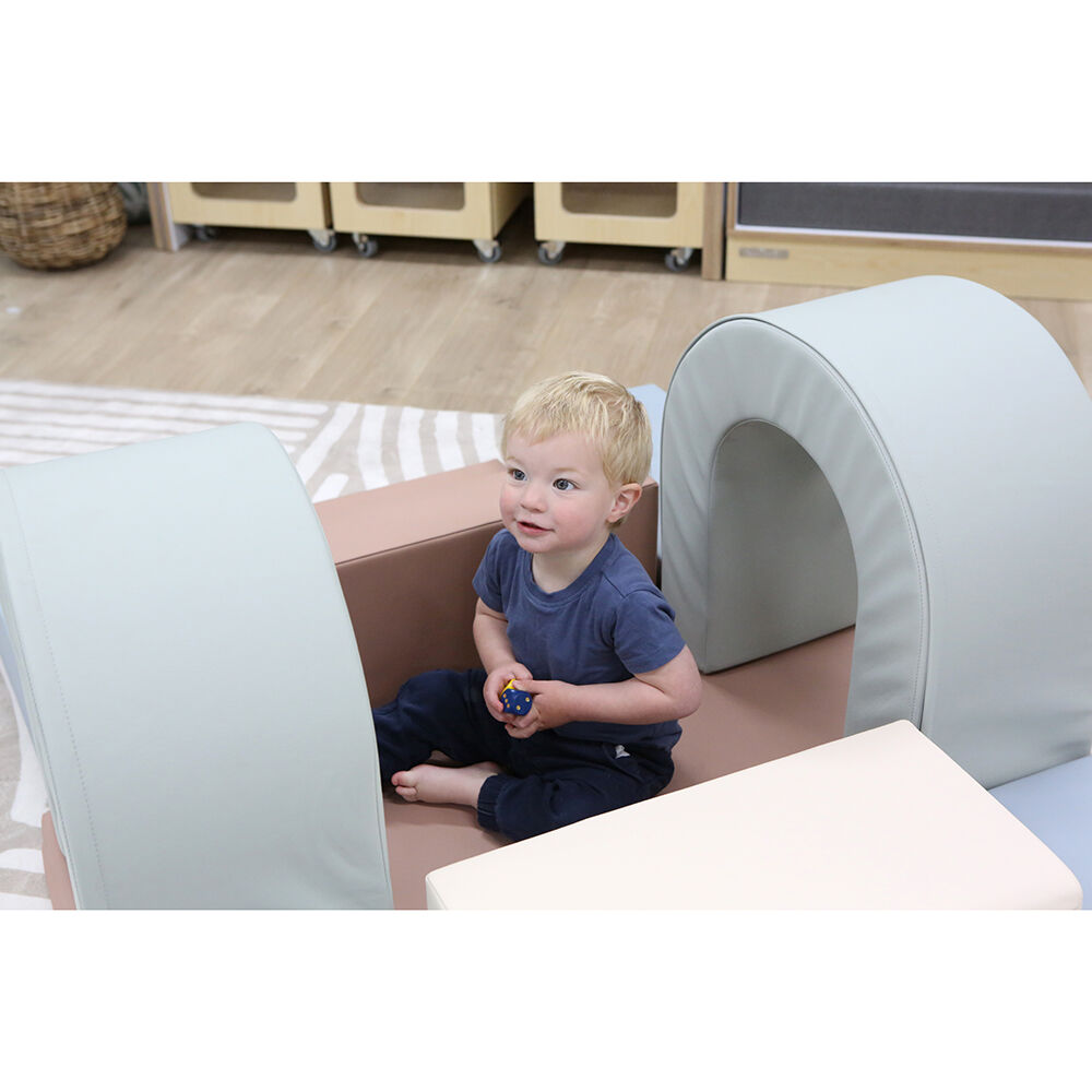 Crafted from high-density foam and finished in neutral tones, each piece is covered with durable, easy-to-clean vinyl, making it perfect for busy early learning centres. For stability and versatility, each block features Velcro fastening strips, allowing the pieces to be securely connected and arranged in a variety of play configurations.
