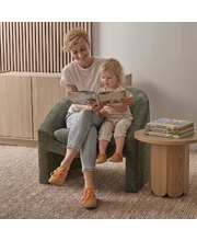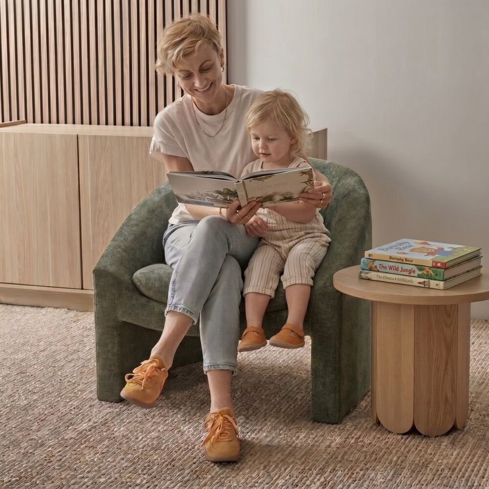 The generous seat provides ample room for an educator and child to sit together, making it especially well suited to shared reading, settling routines, quiet conversations or one-on-one moments of connection. Ideal for reading corners, reception areas, staff rooms, quiet retreat spaces or family consultation areas, this armchair helps create warm and supportive environments throughout an ELC setting. The fresh green tone introduces a gentle sense of colour and can contribute to a calming, nature-inspired interior palette that sits beautifully within contemporary Australian early learning spaces.