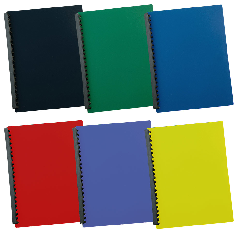 A4 Refillable display book. Add, swap and remove pages as required by releasing the spiral spine inside the book. Available in a range of colours to match your look. Refill pockets available in packs of 10 (code 123150).