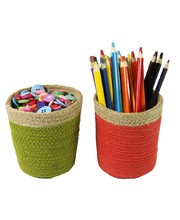 Natural, handcrafted and stylish, this set of five mini jute baskets, measuring 12cm in height are great for storing smaller bits and pieces - craft projects, small children's toys or as a natural storage solution. The natural pastel will look good in any environment and they are durable and eco-friendly. Hand-woven by women working in Bangladesh, combining traditional weaving styles with contemporary designs and natural materials.