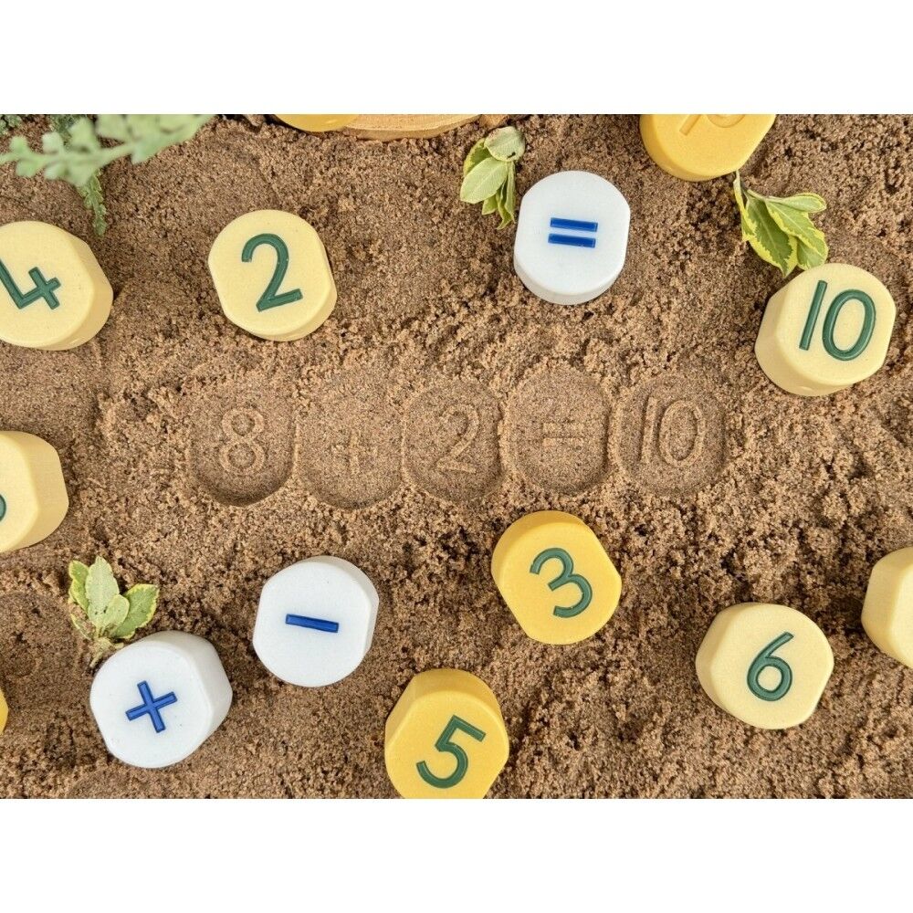 Made from a durable resin stone mix, these versatile stampers are suitable for both indoor and outdoor use and can be easily washed after messy play. Ideal for use in numeracy invitations, sensory trays, playdough experiences and loose parts learning, this robust set encourages repeated exploration of numbers and early maths concepts through hands-on discovery.