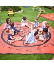 Australian Aboriginal artist De Greer Yindimincarlie, of the Wiradjuri Nation in central New South Wales, designed this recycled, reversible orange and black Yarning Circle Mat. Illustrates a variety of different Aboriginal symbols including men, women, and children. Look closely to spot emu or kangaroo tracks, digging tools, boomerangs and coolamons. This is the ideal way to introduce children to the world of Aboriginal Art and storytelling and embed Aboriginal culture into the classroom through symbolism. These large mats are perfect for schools and early learning environments. Use them indoors for storytelling, art and craft adventures and as a game or transition mat. Outdoors, children can enjoy picnics and outdoor lessons on these mats too. The large sized Yarning Circle recycled plastic mat is durable, easy to clean, soft and comfortable to sit on or walk on. Use it with small and large groups. All Aboriginal Design Recycled Mats have been created by Indigenous Aboriginal or Torres Strait Islander artists under the guidelines of the Indigenous Art Code that promotes authentic, fair and ethical trade in artwork & allows for transparent processes around the production and sale of artwork.