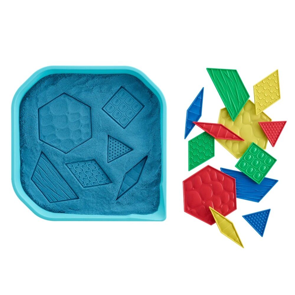 Our Edx Education® Green-n-Learn® Sensory Pattern Blocks is ideal for sensory activities! The textured pattern blocks stimulate children to learn geometry shapes through sensory learning. These sturdy and colourful 2D shapes are a great way for children to identify with different colours and start to use mathematical language. There are 6 different shapes included in 6 different colours. Each of the 6 pattern block shapes features a different tactile texture. Younger learners will enjoy making 'shape pictures' using the shapes themselves or drawing around them to create interesting shape patterns. Specially designed in bigger sizes, so they are also ideal for toddlers to handle easily. Quick and easy to wipe clean if used with messy play activities.This set comes with 12 double-sided activity cards that encourage children to learn about shapes while developing problem-solving skills through fun activities.