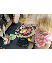 Budding chefs will love to create their own pizzas using these durable food stones. Crafted from a unique stone mix, they are designed for use with mud, sand, dough and water, both indoors and outside. The set is robust enough to be used in a mud kitchen and can be washed clean afterwards. An ideal role-play accessory, the stones can be used for pattern-making and storytelling. The set consists of 15 stones, three of each of the following: green pepper, mozzarella, mushroom, tomato and yellow pepper.
