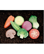 These sturdy vegetable stones offer the perfect ingredients for creative cookery in the mud kitchen, or for inspired role play (indoors or out)! Boiled, roasted, fried or steamed, the vegetables can be used to make all sorts of dishes: soups, stews, salads or stir-fries. As sliced vegetables, children can see how the beautiful sculptures compare to the real thing. Set includes eight vegetables: tomato, pak choi, onion, peas, carrot, mushroom, cucumber and broccoli.