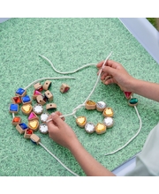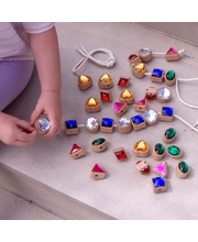 Children can thread the jewels onto the laces to create sparkling sequences and bracelets, sort and match by shape or colour, hide them around the room or garden for a magical treasure hunt, or lay them flat to design colourful patterns and pictures. They can even stand the jewels on their edges and try to stack them carefully (best on a non-slippery surface).