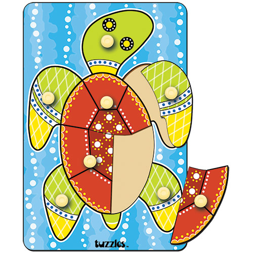 Ideal for beginners, this brilliantly vibrant Aboriginal Art Turtle Knob Puzzle features large knobs that make it easy for little hands. Great for cultural diversity.