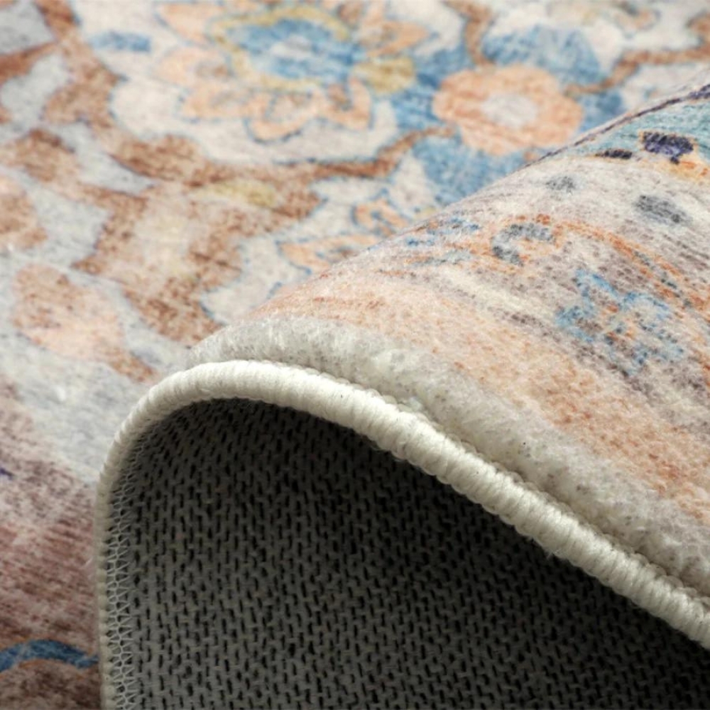 This Vintage Multicolour Machine Washable Rug will add style and the striking colours and patterns will make an aesthetic statement in your interiors. The rug is made from 100% polyester for softness and strength that lasts. Polyester adds lustrousness to the rug. The pile height of the rug is 0.8cm approximately. The rug is perfect for high traffic zones as it is foldable and machine washable. This rug has been designed for indoor use only.